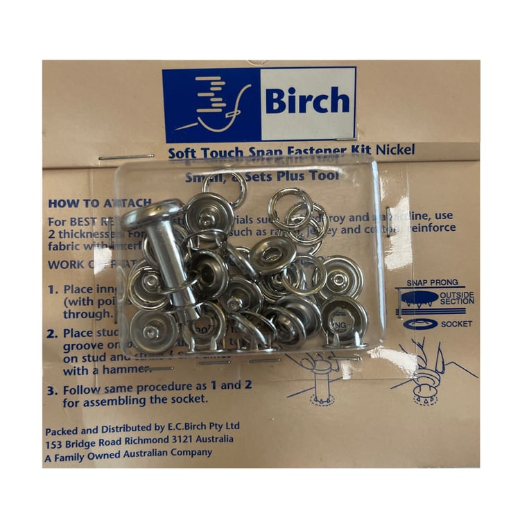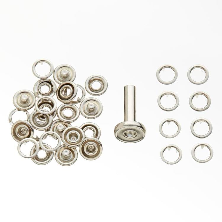 Birch Press Fastener Kit – Nickel – 4-Part Studs (15 Sets + Tool) | 024023